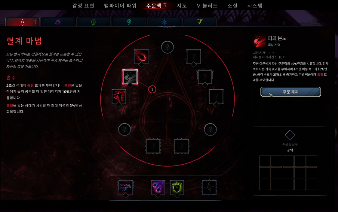 브이라이징 정식 출시와 함께 스킬 시스템도 많이 바뀌었다. 네임드 보스를 잡으면 바로 습득이 가능했던 스킬이 네임드 보스를 잡고 나면 해당 속성의 스킬 포인트를 1포인트씩 얻게 되어 원하는 스킬을 해방시키면 된다. 제단을 통해 초기화도 가능하니 자유롭게 스킬을 해방시켜도 된다.